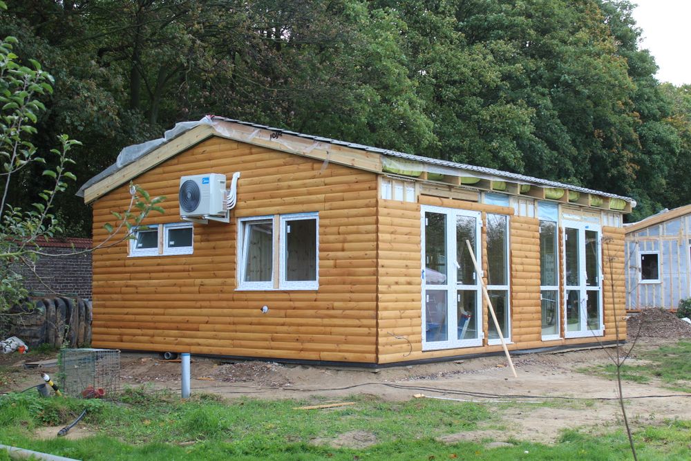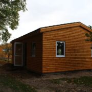 Zbudowaliśmy trzy 63-metrowe domki z bali dla pracowników Fundacji Emmaus. Domki są wyposażone we wszystko, czego potrzeba, w tym kuchnię, łóżko, ogrzewanie, a nawet klimatyzację.