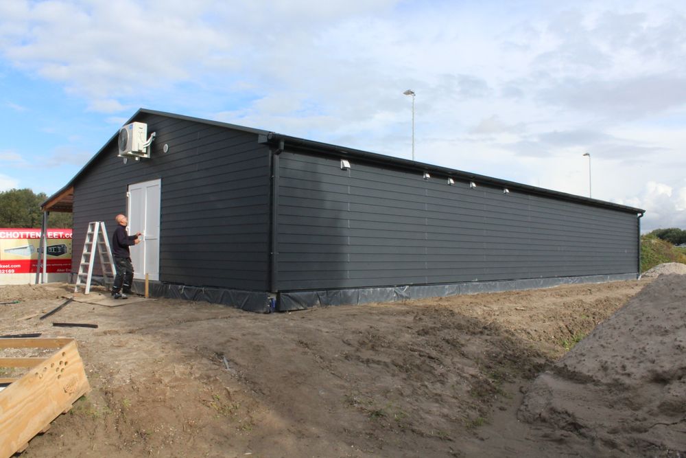 Kantyna sportowa FCC Barendrecht obejmująca szatnie i prysznice dla kobiet i mężczyzn.